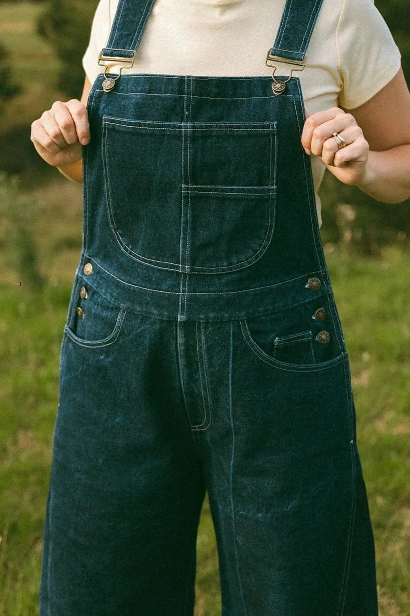 The Bobbie overalls are a timeless wide subtle barrel leg garment with a bib and brace design.